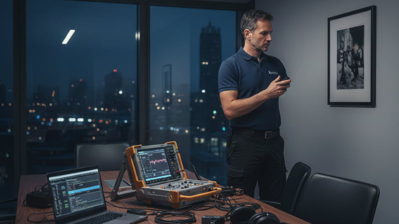 La rilevazione RF è l’uso di uno strumento per cercare segnali radio. La bonifica ambientale professionale è un processo più profondo che include l’ispezione fisica, l’analisi dello spettro elettromagnetico e l’uso di diverse tecnologie (ottiche, termiche e radio) per garantire che l’ambiente sia sicuro al 100%.